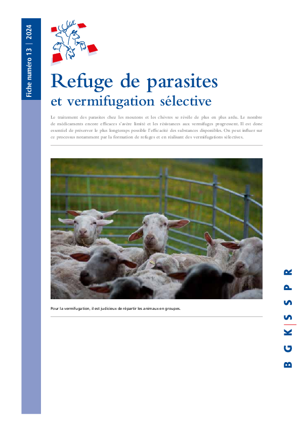 Le traitement des parasites chez les moutons et les chèvres se révèle de plus en plus ardu. Le nombre de médicaments encore efficaces s’avère limité et les résistances aux vermifuges progressent. Il est donc essentiel de préserver le plus longtemps possible l’efficacité des substances disponibles. On peut influer sur ce processus notamment par la formation de refuges et en réalisant des vermifugations sélectives.