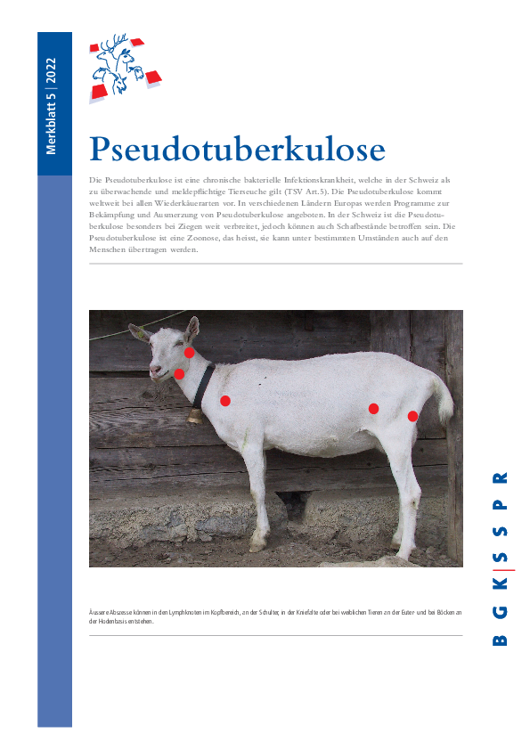 Die Pseudotuberkulose ist eine ansteckende, unheilbare Krankheit. Typisch ist die Bildung von Abszessen an Kopf, Hals, Schulter, Knie oder Euter.